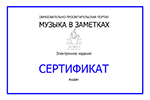 Сертификат Бычковой Н. А. за публикацию «Н. Бычкова. Весёлые нотки, Песенки-раскраски для начинающих скрипачей»